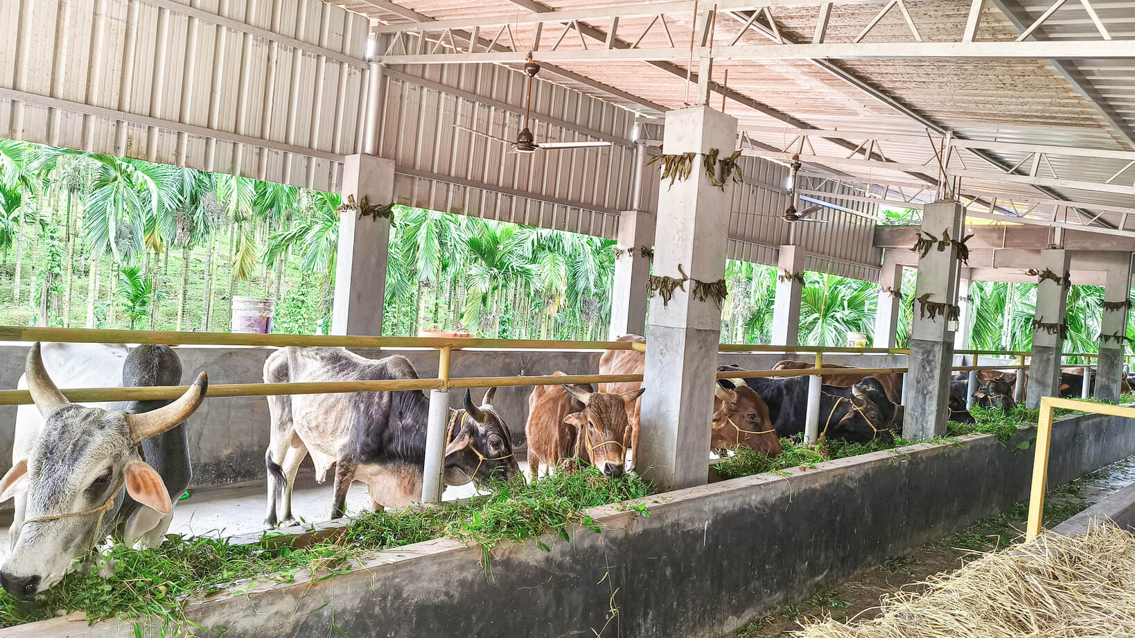 Located in the serene village of Derla, Keyyur, our 6000-square-foot sanctuary is home to 25 well-cared-for cows, producing high-quality organic fertilizers (slurry and Dhenusara) from cow dung and urine.